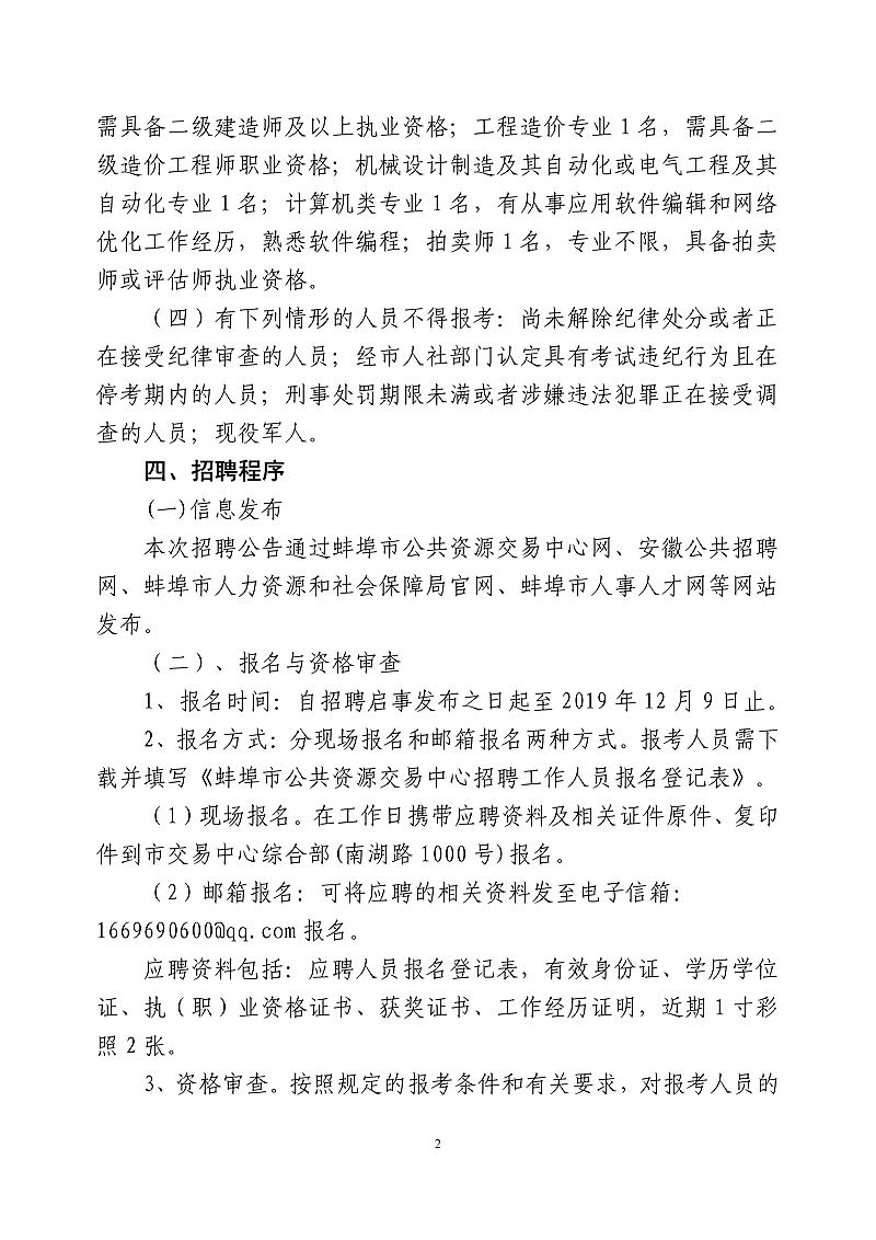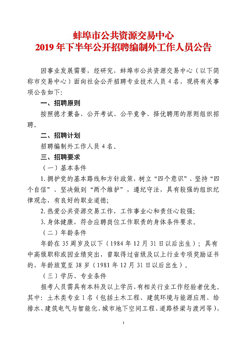 蚌埠市公共資源交易中心2019年下半年公開(kāi)招聘編制外工作人員公告