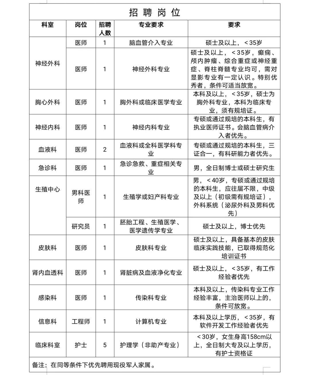 醫(yī)院根據(jù)工作需要,急招醫(yī)療、信息科等部分崗位若